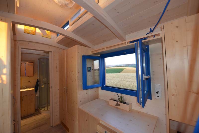 Unsere „Leonie“ ist Ihr treuer Begleiter im Urlaub oder Ihr dauerhafter Wohnsitz. In Ihren fahrbaren Wohntraum gelangen Sie über die große Haustür an der Längsseite. Trotz der geringen Länge von 5,10 m lädt „Leonie“ Sie durch Ihre offene Raumgestaltung mit integriertem Holzofen zum gemütlichen Verbleib ein. „ Leonie“ ist für maximal 2 Personen ausgelegt.